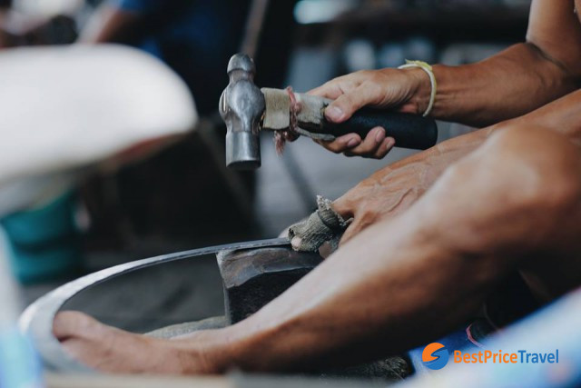 Depart Wat Pho, hop on car to transfer to Giant Swing, the gateway to the Baan Bat community - a community specializing in handmade monk-bowls for over 100 years. Wander around this area to witness the creation of alms bowls - an important handicraft for Thailand’s Buddhist residents - has sustained much of the community here. Folowing the tourguide to meet the locals here and learn how they made it.