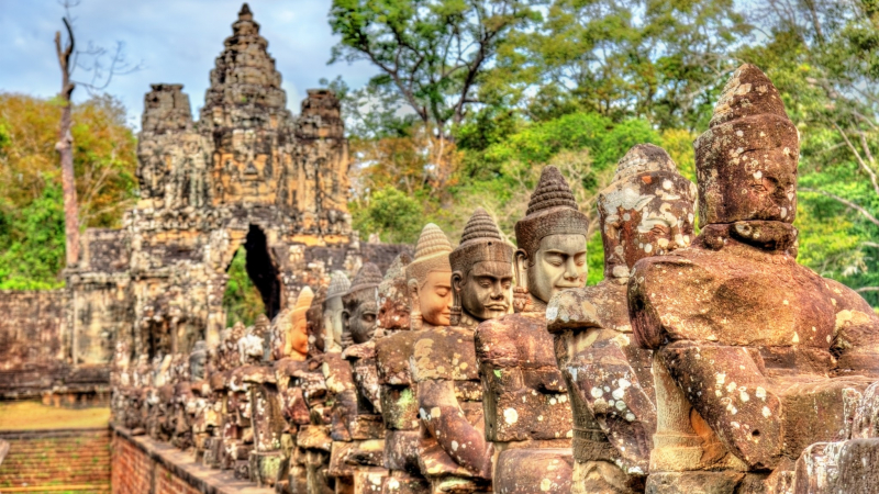 - Witness the impressive South Gate of Angkor Thom, known for its massive stone carvings of human faces.