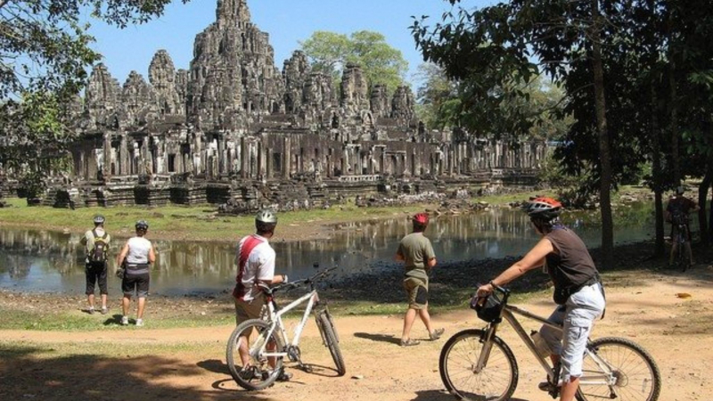 As you cycle through the surrounding countryside adorned with rice paddy fields and sugar palm trees, you will experience the typical Cambodian landscape.