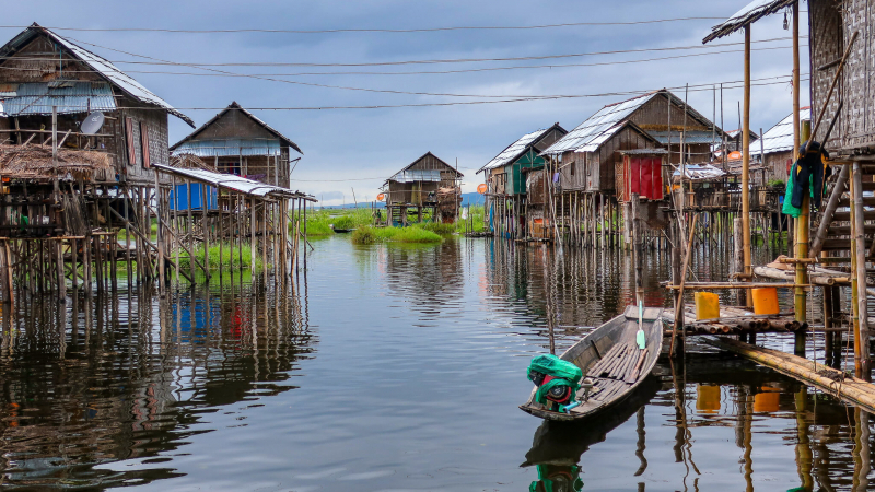 - Pleasure trip to Inle Lake by boat with its calm waters are surrounded by high hills and dotted with floating gardens and stilted villages.