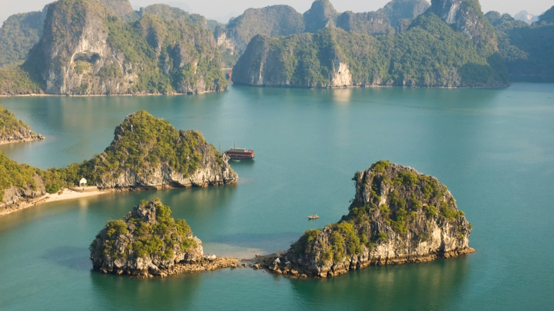 - Halong Bay: Majestic limestone karsts rising from emerald waters.