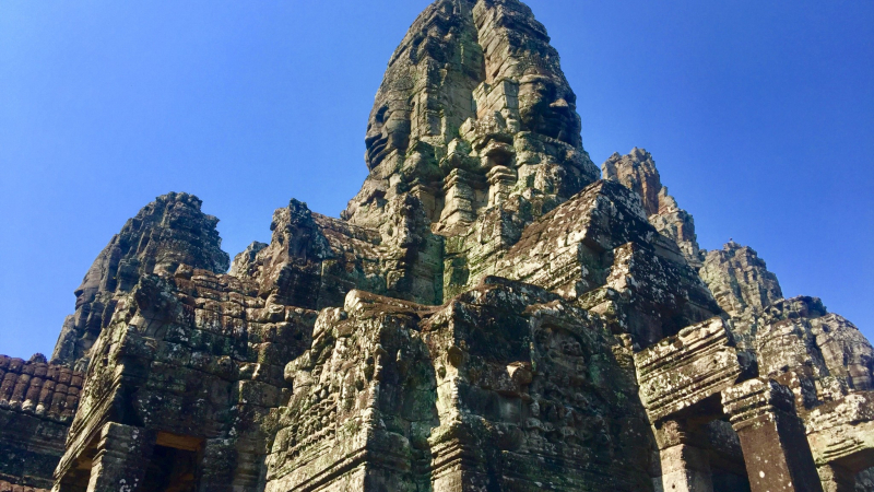 Templo del Bayón , una maravilla conocida por sus 54 torres adornadas con más de 200 caras sonrientes de Avolokitesvara. Cada cara parecía susurrar secretos de una época pasada, invitando a los visitantes a desentrañar los misterios mantenidos dentro.