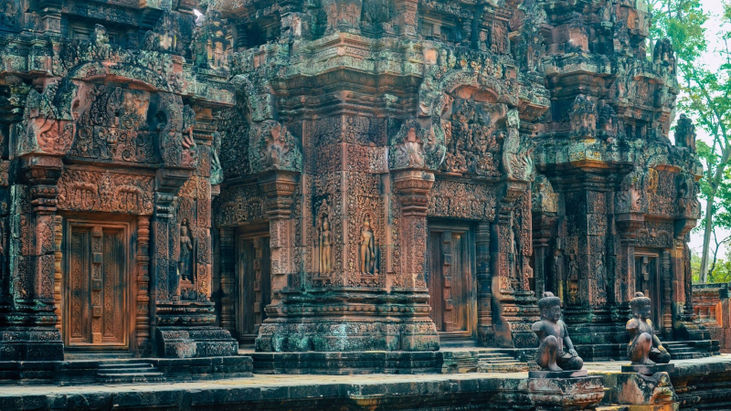 Angkor Wat . Al ser un sitio del Patrimonio Mundial de la UNESCO desde 1992, esta obra maestra arquitectónica se desarrolló ante los viajeros, revelando su belleza y esplendor. El templo contaba con el bajorreliefal continuo más largo del mundo, sus paredes de la galería externa que narraban historias cautivadoras de la mitología hindú.