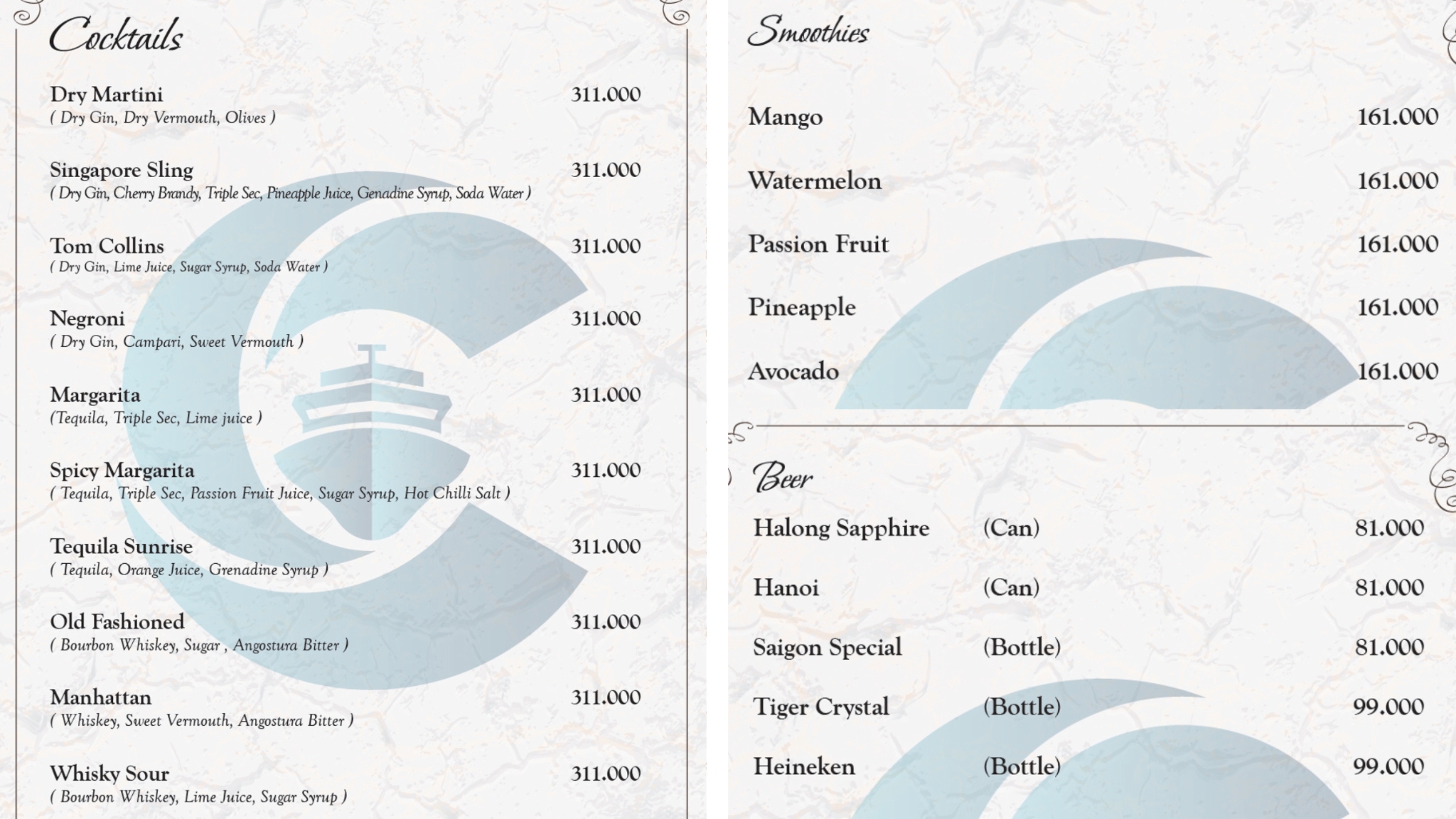 El crucero Catherine cuenta con dos elegantes restaurantes, diseñados con un interior lujoso y confortable que destaca por la sofisticación del estilo indochino, creando así una experiencia gastronómica memorable para todos los pasajeros.