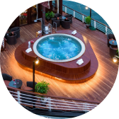 - Premium onboard amenities: mini golf, lounge & bar, outdoor sauna, cigar & poker, etc.