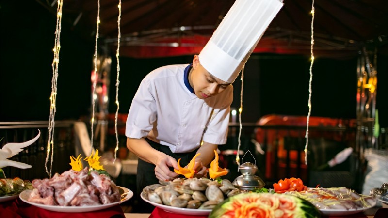 A deluxe dinner is served at the restaurant.