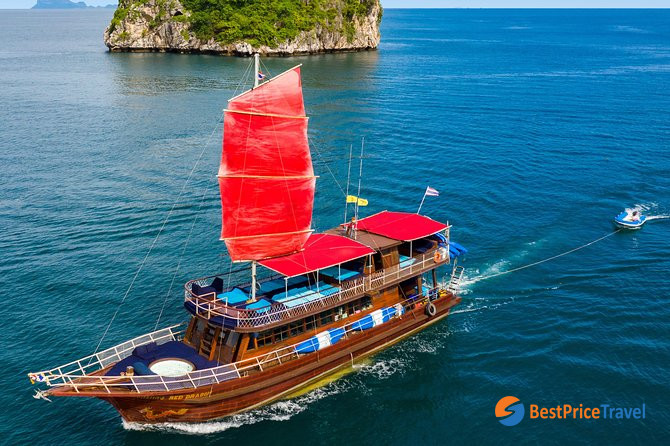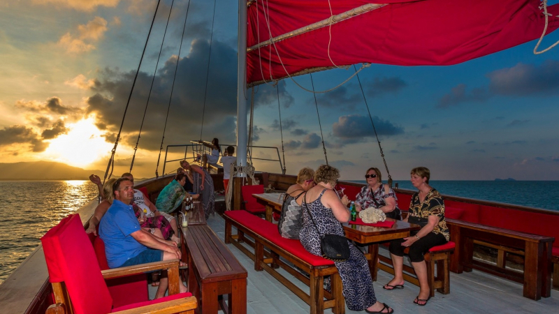 Our cruise start from 16:30 until 19:30 along Samui to Koh Som. You have a great time to enjoy the best sun set view & relaxing while cruising on board. Also a very delicious Thai meal buffet is provided to give you an unforgettable dinner experience.