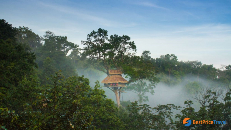 Hotel (5 nights), Treehouse in the jungle (2 nights), Homestay at Ban Sompanmai (1 night), Homestay (2 nights), Homestay in Chom Ong village (1 night), Homestay in Muang Soune (1 night)