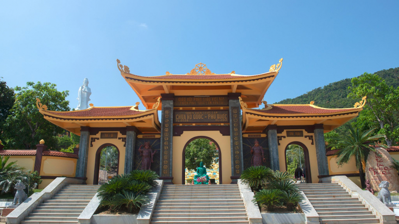 The Ho Quoc Pagoda, the largest Buddhist pagoda on the island, is our final stop. The pagoda was built in 2011 in the Ly - Tran architectural style. You will be lost in a tranquil area while admiring magnificent artworks.