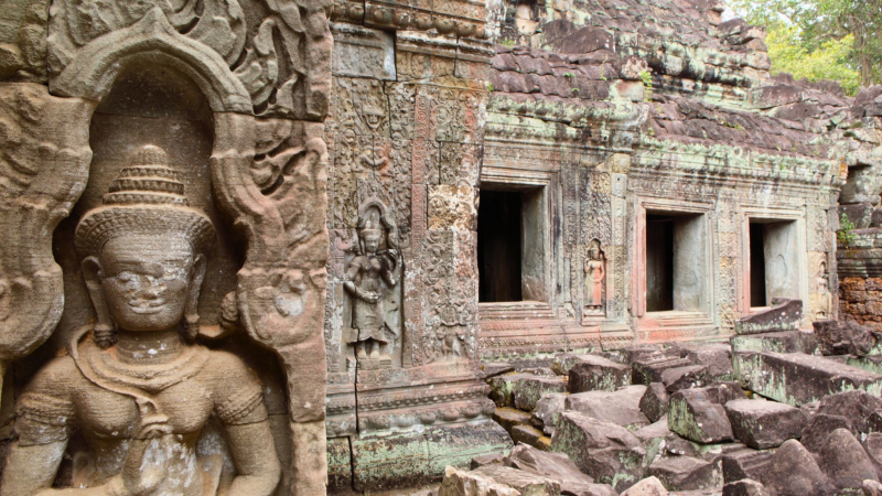 - Have a glimpse of the Bayon temple’s distinctive bas-relief carving architecture
