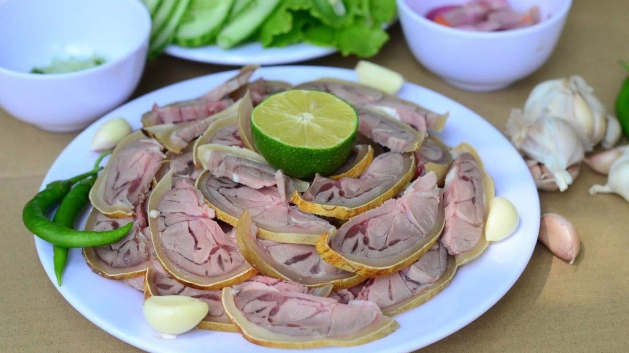 The meat, carefully selected from young cows, is grilled over open flames to maintain its sweetness and the crispiness of the skin. It's then thinly sliced, served with a delightful dipping sauce and fresh greens.