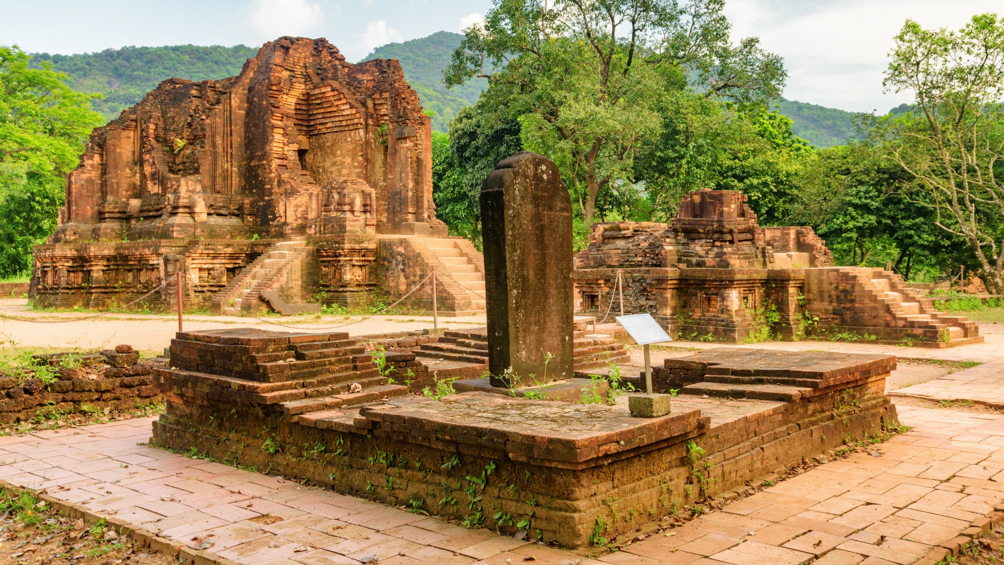 - My Son Sanctuary includes many old Cham temples situated in a valley about 2 kilometers wide, surrounded by hills and mountains.