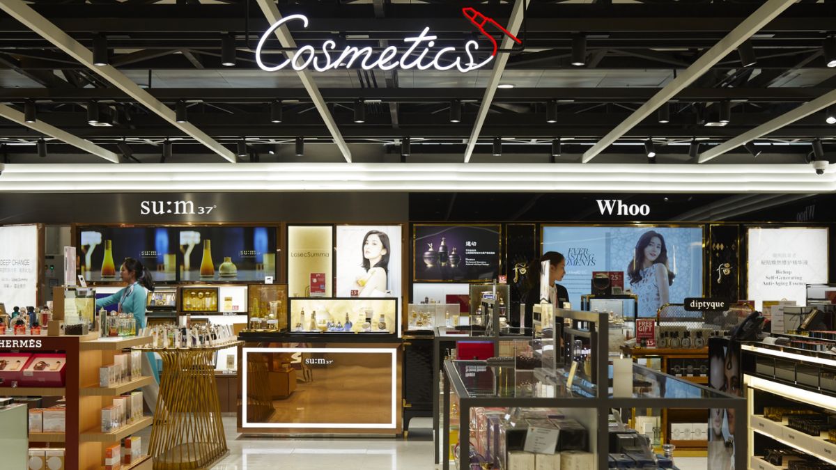 Cosmetics & Perfumes Are On Display In The Airport's Duty-free Shop