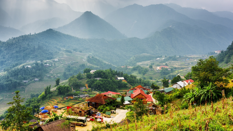 You will begin your journey from Hanoi to Sapa by boarding a comfortable bus. As you leave the bustling capital behind, you will pass through scenic countryside views, including lush rice fields and rolling hills.