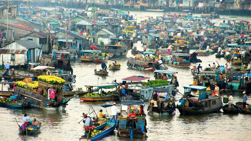 Recharged, continue pedaling deeper into the Mekong Delta, passing through flourishing orchards and charming rural villages. As the sun begins to set, arrive at your accommodation in Cai Be, where a hospitable family welcomes you into their home.