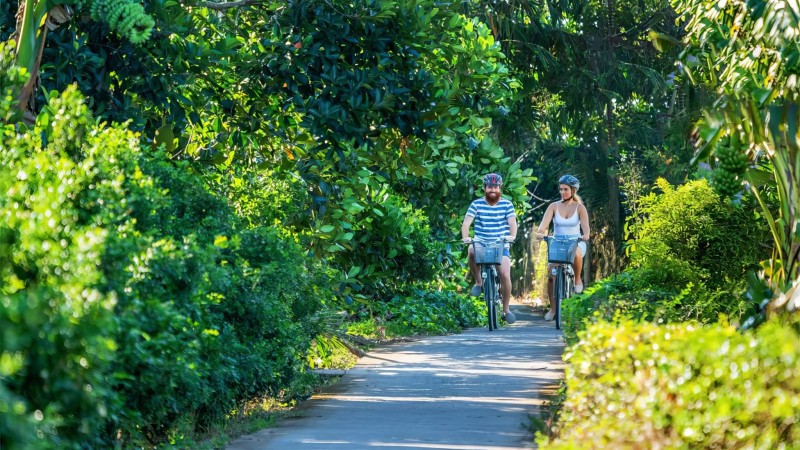 Kick off your adventure with a short ferry ride, immersing yourself in the peaceful rhythm of local life. Then get on your bike, and along the way, pause to savor fresh durian, the Mekong Delta’s signature fruit.