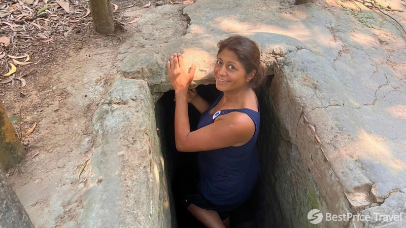 Explore Cu Chi Tunnel, an extensive network of underground tunnels that were used by the Viet Cong during the Vietnam War as hiding spots, communication and supply routes, and living quarters.